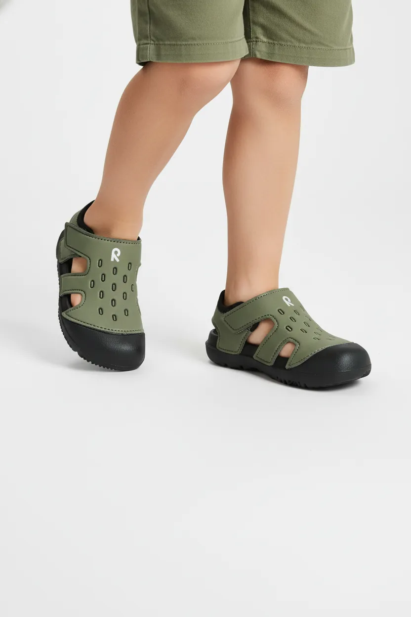 Легкие детские сандалии Koralli — отличный выбор для малышей, которые любят пляж и плавание в воде. Материал быстро сохнет, а две застежки-липучки облегчают надевание и снимание.