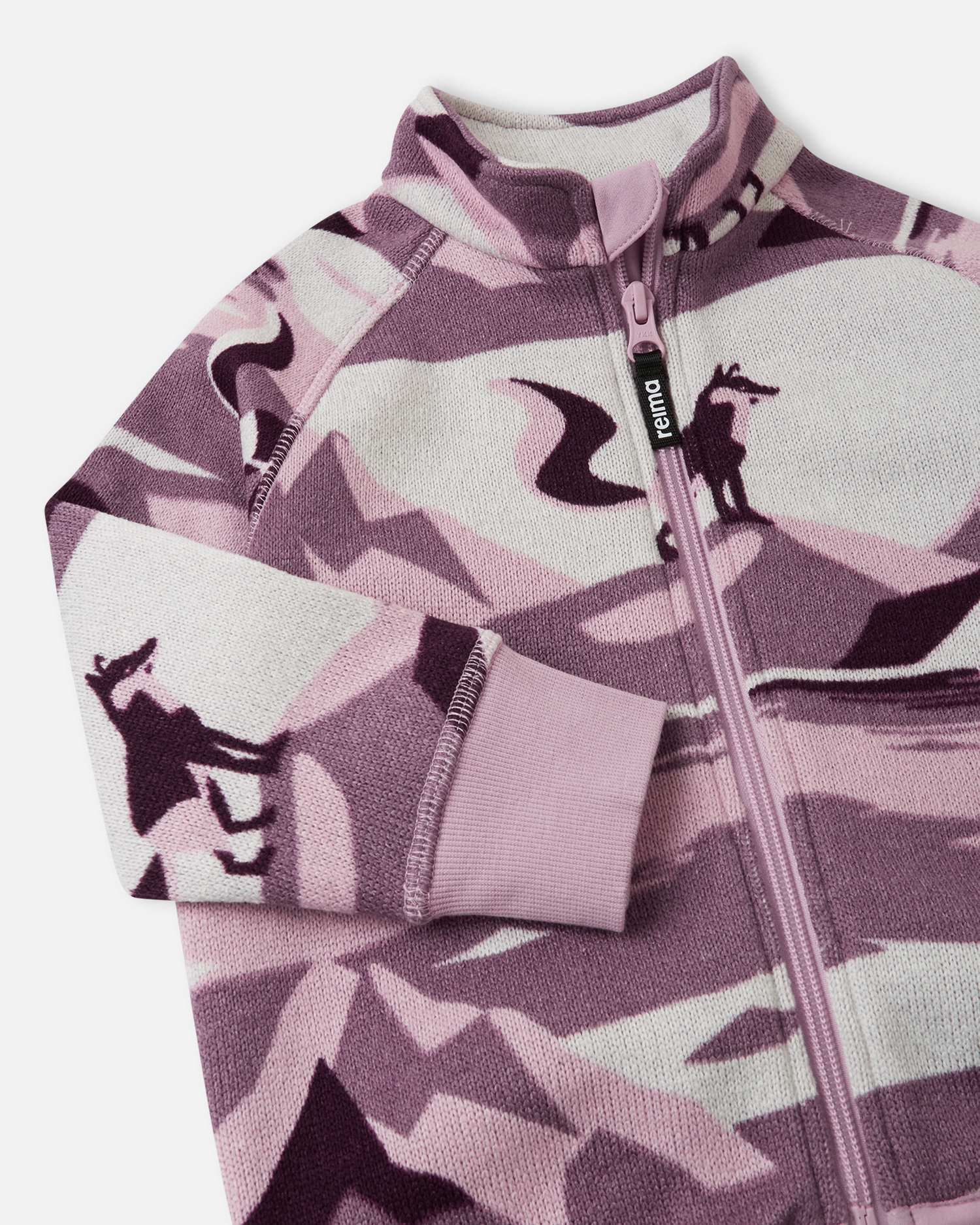 Мягкий вязаный меланжевый флис очень стильно смотрится, он мягкий и уютный, как пряжа, но при этом имеет все достоинства флиса. Флис – теплый и дышащий материал, который быстро сохнет и не парит. Молния во всю длину облегчает надевание, а защита для подбородка не даст поцарапать шею и подбородок. Классный модный рисунок!
