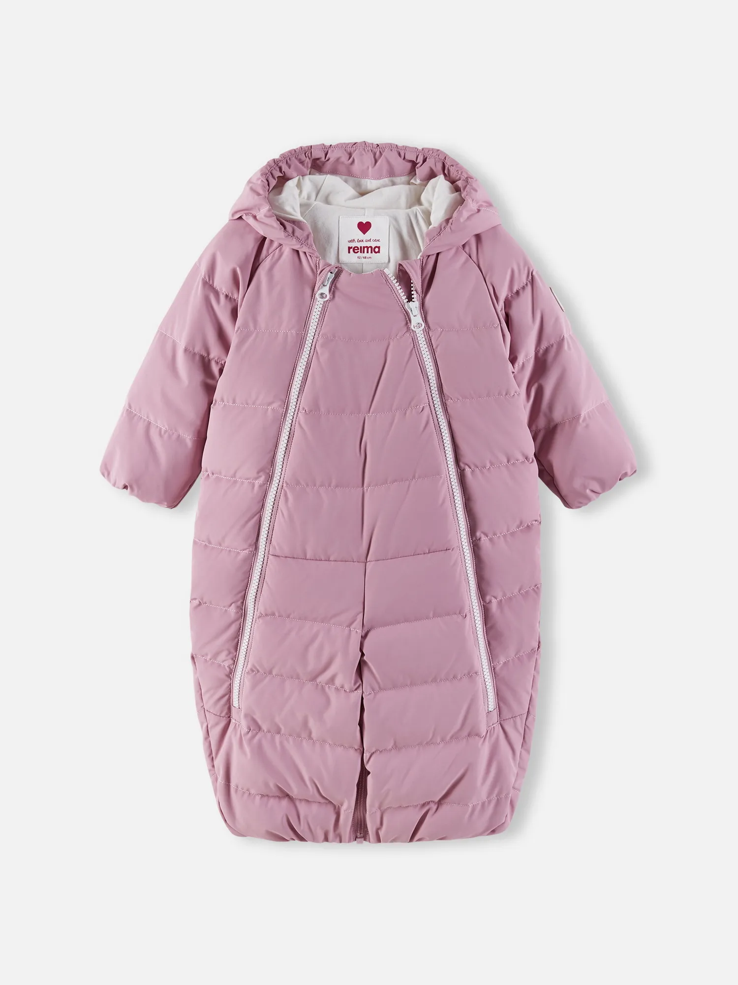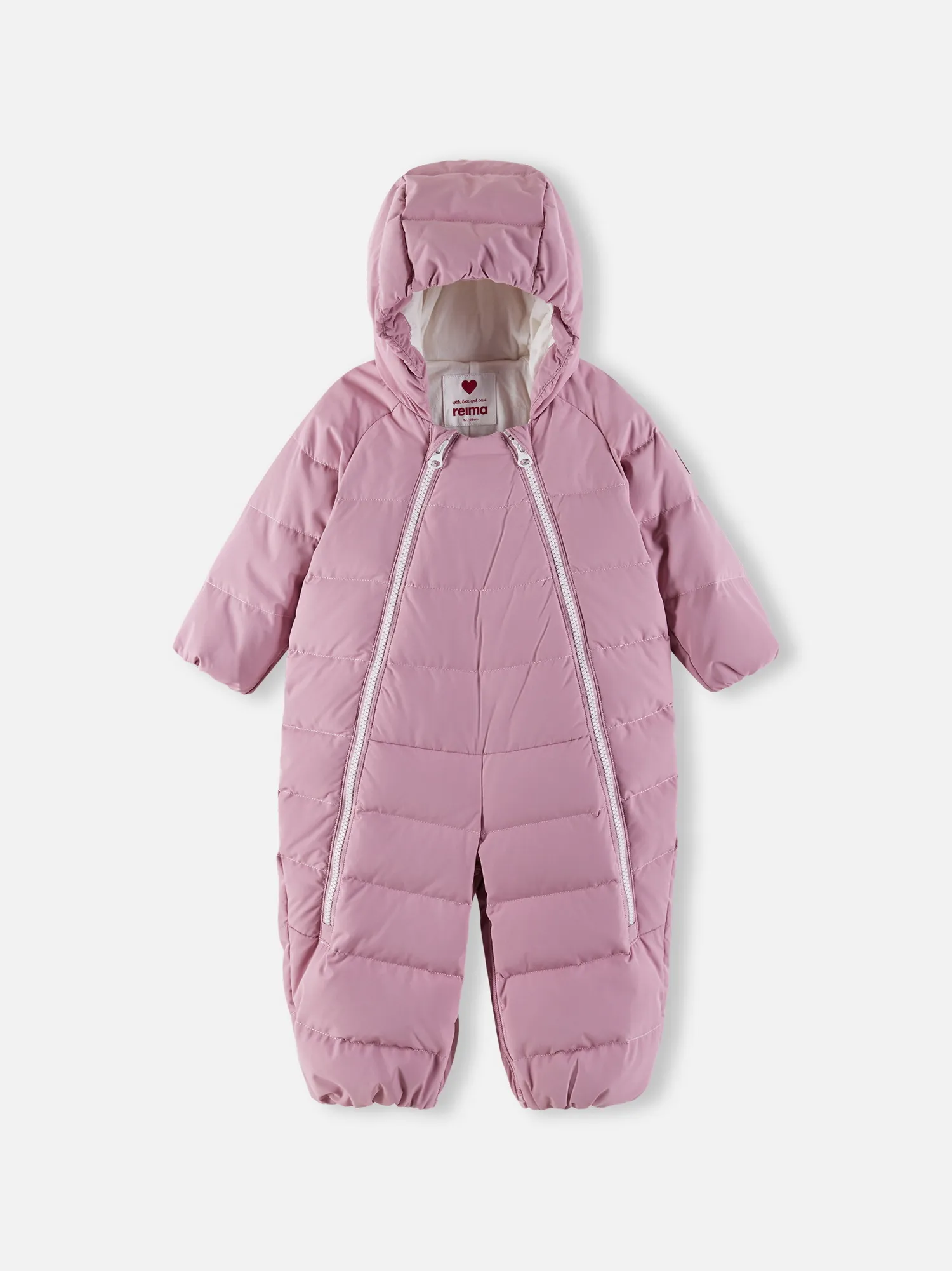 Он украшен красивой строчкой, а благодаря двум молниям во всю длину его очень легко надевать. Этот легкий пуховый костюм изготовлен из ветронепроницаемого, дышащего материала с верхним водо- и грязеотталкивающим слоем — он не пропустит ветер, и малышу в нем будет очень комфортно.
