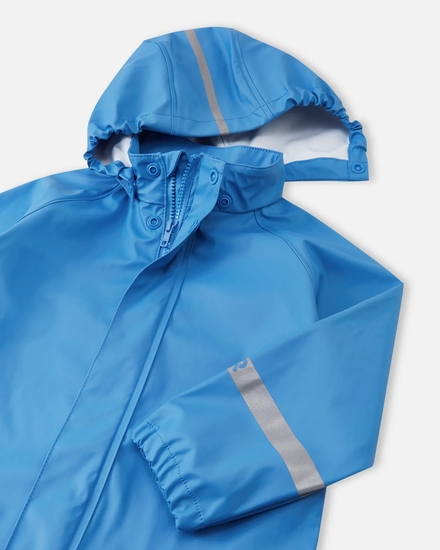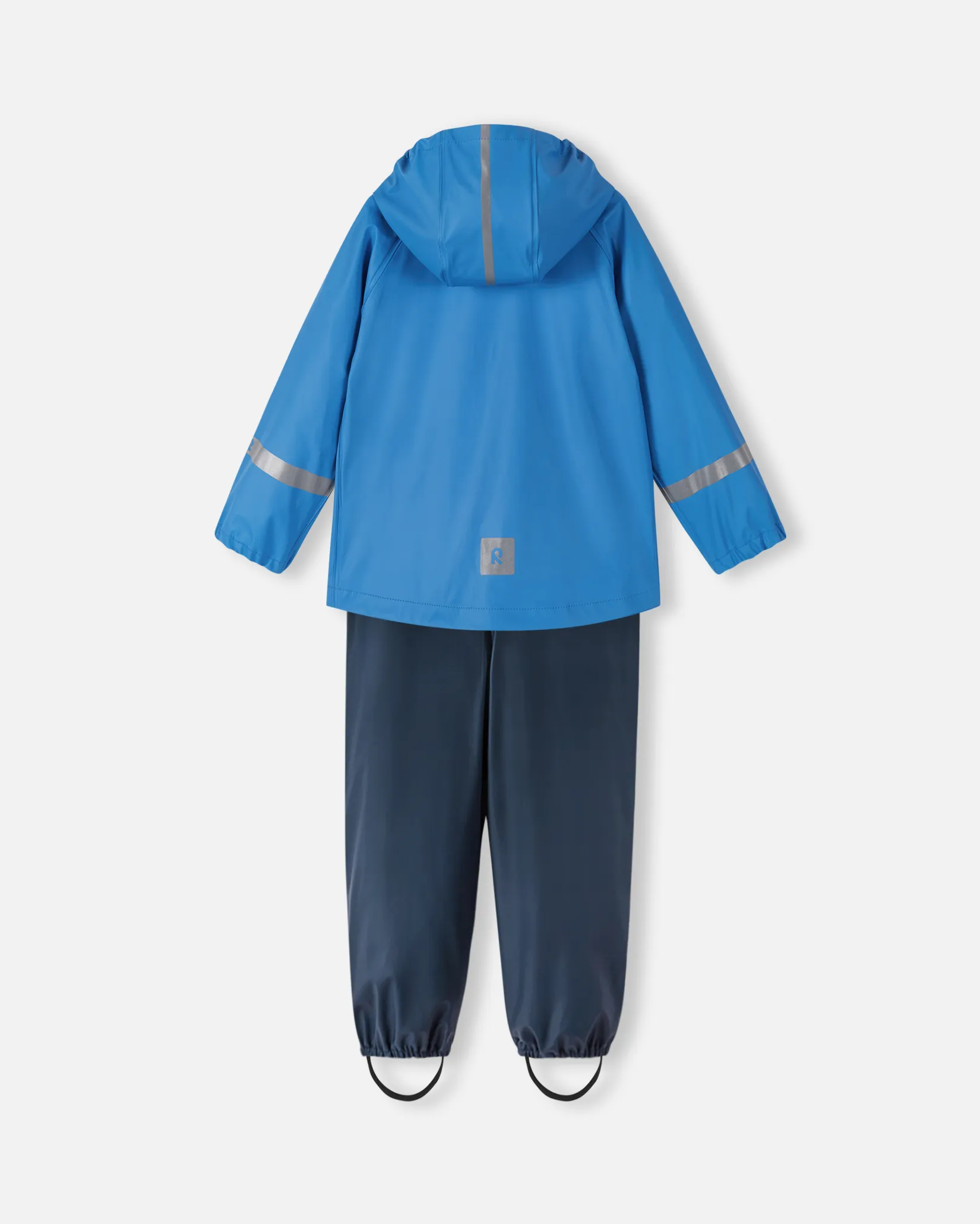 Комплект изготовлен без ПВХ и дополнен светоотражающими деталями для безопасности ребёнка даже в сумерках. Практичные элементы включают: регулируемые подтяжки и талию, эластичные концы штанин, съёмные штрипки и светоотражающие акценты.
